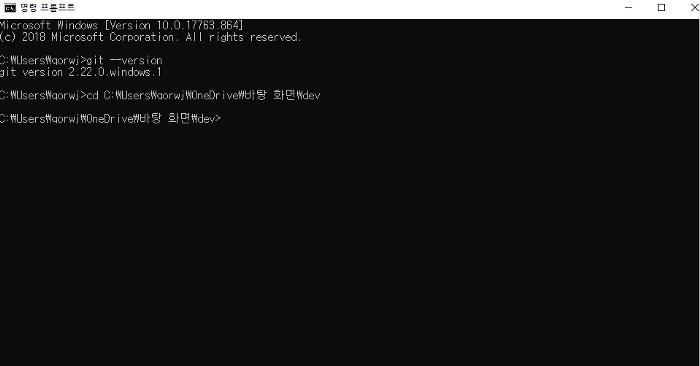 설치가 완료되면 커맨드 창을 열어 git --version을 입력하여 잘 나오는지 확인해야 한다.