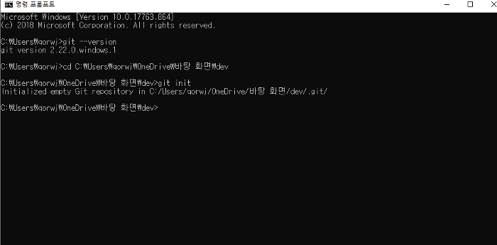 이제 git init 명령을 통해서 깃 저장소를 생성해 준다.