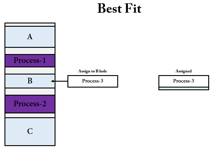 - 가장 적합한 가용 가능한 hole 을 찾아서 할당하는 방법을 의미한다.