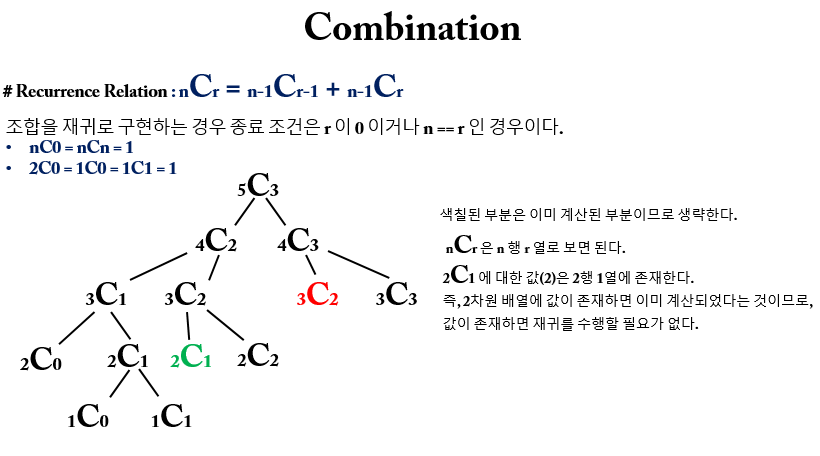 // 조합(Combination) : nCr = n-1Cr-1 + n-1Cr