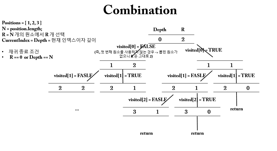 combinationByDfs(arr, visited, currentIndex + 1, r - 1); // currentIndex 에 해당하는 원소를 사용하면 R 값을 -1