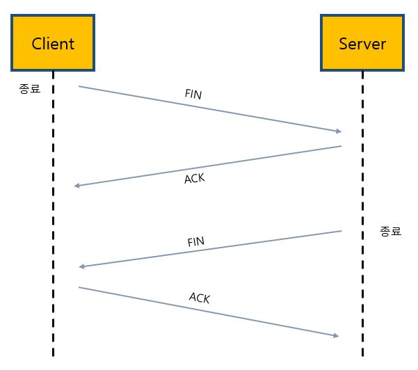- 데이터를 전부 송신한 클라이언트가 서버로 FIN 을 송신